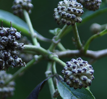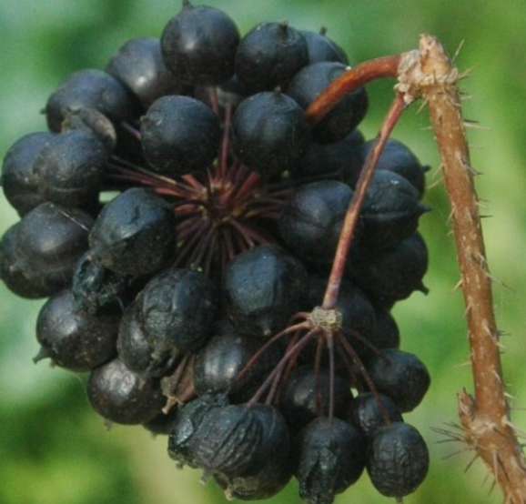 열매 : 장과상의 핵과는 길고 둥글며 길이 7∼10mm, 지름 7mm이고 마르면 5 능이며 4∼6알의 씨가 있고 8∼9월에 익습니다.