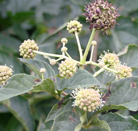 꽃 : 6∼7월에 암•수 꽃이 딴 그루에서 산형화서로 피며 양성화로 달립니다. 꽃받침은 녹색으로서 자방과 합생하며 윗머리는 5개로 조각났습니다. 암꽃 꽃잎은 담황색, 수꽃과 양성화의 꽃잎은 담자색으로 난형이며 일찍 진 다. 수술은 5개이며 꽃밥은 보랏빛이거나 흰빛입니다. 자방은 5실이고 주 두는 5갈래입니다.